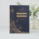 An elegant night-time coastal wedding design featuring a luminous gold lighthouse illustration set against a deep navy backdrop. Flowing ocean waves, celestial accents, and refined metallic linework create a dramatic, high-end atmosphere inspired by seaside evenings and maritime romance.