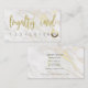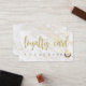 Weißer Marmorhintergrund mit goldenen Akzenten und ein individuelles Drehbuch in elegantem handgeschriebenem Schriftart. Auf der Rückseite finden Sie alle Geschäftsinformationen in elegantem minimalistischem Schriftart