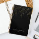 Le planificateur chic avec une épine d'or présente du lettrage blanc classique sur un riche arrière - plan noir avec des fils verticaux de faux fils de feuille d'or en cascade du haut. Personnalisez avec deux lignes de texte personnalisé, faisant de ce planificateur un choix parfait pour les entreprises, les rendez-vous ou les tâches quotidiennes.