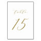 Tabelle 15. Elegante Tischnummern mit goldminimalistischer Schrift. Diese weiße und goldfarbene Tischnummer ist ideal für Hochzeiten, Abschluss, Babyduschen, Brautpartys und andere Veranstaltungen. Weitere Nummern und Farben sind verfügbar.