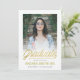 Annoncez les réalisations de votre diplômé grâce à ces annonces de graduation à la mode et moderne avec un faux film d'or! La couleur du texte et du fichier de sauvegarde sont entièrement personnalisables. Ou, retirez le support rayé pour écrire une mise à jour sur votre diplômé!