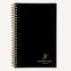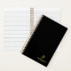 Personalisierte moderne Schwarz-Gold-elegante Script Monogram Template Beruflich Spiral Notebook.