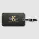 Gold Monogram Initial and Name on Black Luggage Tag