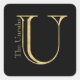 Gold Monogram U und Name auf einer beliebigen Farb Quadratischer Aufkleber
