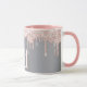 Eine elegante, mädchenhafte und glänzende Tasse. Rose Gold und rosa Imitate Glitzer Tropfen, Farbe Tropfen aussehen. Chic Imitate silber metallisch aussehend Hintergrund. Personalisieren und fügen Sie Ihre Monogramm-Initialen, Buchstaben. Rose goldfarbene Buchstaben.