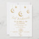 Celebrate your Eid in elegance with this stunning Minimalist Gold Moon and Stars Invitation. This design features a clean, white background adorned with beautiful hanging gold crescents and stars, creating a sophisticated and modern look for your Eid al-Fitr or Eid al-Adha party. The chic gold calligraphy and delicate floral line art at the bottom add a touch of grace to your celebration.