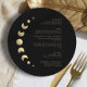 Verwandeln Sie Ihr kulinarisches Erlebnis mit der "Gold Moon Circle Wedding Menu Card", dem Set vor einem schwarzen Hintergrund. Die goldenen himmlischen Elemente, begleitet von den stilvollen, leicht anpassbaren Initialen, bringen eine Touch Magie in Ihre Tischumgebung. Die Mondphasen, die in das Design integriert sind, erhöhen das kulinarische Erlebnis und symbolisieren die abwechslungsreichen Gänge Ihrer himmlischen Feier.
