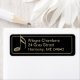 Goldverzierte sechzehnte Musiknote auf einem schwarzen Hintergrund mit einer einfachen goldenen Grenze. Ideal für Musikliebhaber.