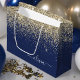 Gold Navy Blue Glitzer Script Monogram Girl Name Große Geschenktüte
