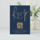 Gold Navy Blue Script Qr Code Hochzeit RSVP Karte