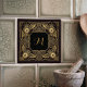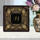 Embark on a journey of style with this captivating ceramic tile, featuring a striking Art Deco design. The intricate golden lines showcase majestic owls with compasses, symbolizing wisdom and guidance, set against a deep black background. A prominent golden monogram adds a personal touch, making it a unique statement piece for any home or office. This tile is perfect for creating a sophisticated and adventurous atmosphere, blending vintage charm with modern elegance. Its detailed craftsmanship and luxurious color palette ensure it will be a conversation starter.