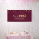Dieses moderne Begrüßungsbanner eignet sich perfekt für ein Wiedersehen-Party in bordeauxrotem und goldenem Ambiente. Ein stilvolles Party-Banner, um sich an Ihren besonderen Tag zu erinnern. Das Design verfügt über einen benutzerdefinierten goldenen Farbtext " Klasse von 1985 / 40 Jahre Wiedersehen " mit konfetti Hintergrund. Sie können den Text mit Ihren eigenen Informationen personalisieren. (Abschluss, Wiedersehen, Schulname usw.)