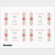 Ein individueller Save the Date Aufkleber mit Vintagen Druckern kennzeichnet das Ätzen eines dekorierten Schildes und ein Blumendesign der Gänseblümchen und Blätter in Rot und Gold, restauriert aus einem antiken Manuskript.