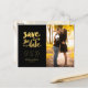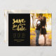 Schwarz und Imitate bedruckten Goldfolie modernes Foto Save the Date Postkarte mit niedlichen fett Schrift Typografie. Elke Clarke © Zweites Bild auf der Rückseite der Karte ist schwach, sodass Text zeigt.