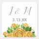 Gold-Rose-Initialen und Datum Quadratischer Aufkleber