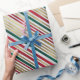 Feiern Sie die Ferien mit einem harmonischen Muster von abwechselnden roten, grünen und goldenen Linien, jeder Schlag ein Tribut an die festliche Jahreszeit. Der metallische Glanz des Goldes tanzt vor einem leicht strukturierten, weißen Hintergrund und verleiht den lebendigen Weihnachtstönen Tiefe und Eleganz. Dieses zeitlose Design verwandelt jedes Geschenk in ein Meisterwerk des Feiertagssaufels und verbindet Tradition mit zeitgenössischem Flair