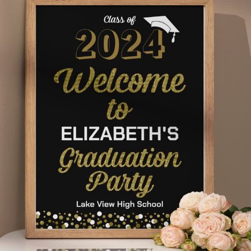 Black Gold Foil Confetti Script Graduation PartyConçu par CaMi Designs