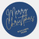 Gold Script Frohe Weihnachten auf Blue Runder Aufkleber