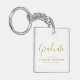 Ce porte - clé moderne et élégant de graduation de style dispose d'un diplômé dans une belle et attrayante typographie de script or. Personnalisez ce produit en ajoutant le nom et la classe ou l'année et l'école ou votre devis préféré. Classique et facile à personnaliser ! Des faveurs parfaites pour votre fête de remise de diplômes. Félicitation !