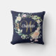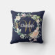 Hübsches Monogramm Wurfkissen mit einem Namen und Skript Nachname Initial, gerahmt durch eine delikate Aquarell Rose Garland Blumengarten auf einem marineblau Hintergrund. Personalisieren Sie sich, um ein besonderes Geschenk zu erhalten! Entwickelt von Thisisnotme©