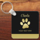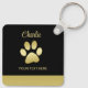 Gold Shiny Dog Paw auf schwarzem Hintergrund Schlüsselanhänger