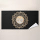 A symmetrical mandala design featuring intricate a yin yang floral pattern in gold and silver.
