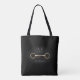 Für Reiter und Pferdefreunde bietet diese hübsche Totentasche eine Trompe l'oeil-Illustration eines lockeren Ringsnaffelbiss zwischen Monogramm und Namen.