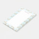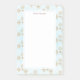 Sticky Noten mit einem festlichen Urlaub Wiederholung Muster von schicken Goldschneeflocken gezeichnet mit eleganten Kristall-Formen. Ein frostiger hellblauer Hintergrund. Ein weißes Rechteck, über dem man schreiben kann.