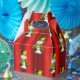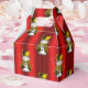 Ein festlicher kleiner Kerl, dieser goldene Schneemann mit goldener Samtweste und Top-Hut, umgeben von Sternen und Bögen auf einem farbenfrohen roten Hintergrund, wird eine großartige Touch von Weihnachtsgeist und niedlichem Launen zu Ihrem Geschenk hinzufügen, das diese Ferienzeit.