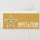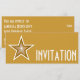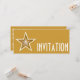 Modernes Design mit einem "leuchtenden" goldenen und weißen Stern auf dunkelgelbem Hintergrund. Einladung mit einem anpassbaren Design für Sie, um mit Ihrem eigenen Text, Bildern und Ideen zu personalisieren. Bitte beachten Sie, dass es sich um ein gedrucktes Bild handelt, das mit Originalfotos und Digitaltechnik erstellt wurde, es nicht glänzt oder echte Glitzern enthält.