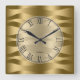 Gold Tones Abstract Wavy Zebra Stripes Pattern Quadratische Wanduhr
