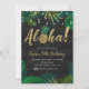 Invitation à l'anniversaire de Chalkboard avec des Feuilles tropicaux et des lumières