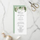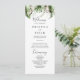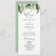 Dieses goldene, tropische Hochzeitsprogramm im Grünen eignet sich perfekt für eine Hochzeit in Urlaubsort. Das Design besteht aus handbemalten Aquarellgolden, grünen Blätter aus Palmen und Bananen mit rosafarbenen Blume, die in hübschen Bouquets angeordnet sind.