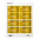Versand-Etiketten in goldener Farbe mit Rücksendeadresse-Vorlage. Fett gedruckter weißer Text in zwei Vorlagenbereichen für Rücksendeadresse und Versandadresse. Beachten Sie, dass alle Etiketten gleich gedruckt werden.
