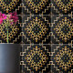 Elegantes Keramik Fliesen-Design mit einem nahtlosen Muster aus geometrischen Formen in Imitaten goldfarben auf einem schwarzen Hintergrund.