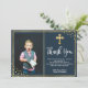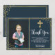 Einfache, elegante blaue Taufe und Taufe danke Karten. Vielen Dank an Familie und Freunde mit dieser modernen personalisierten Dankeschön an religiöse Flachkarte. Es enthält handgeschriebenes "Danke"-Skript, um doppelte Imitat Goldfolie Rahmen und Gold Glitzer Konfetti auf marinischem Hintergrund. Dieses moderne schöne Foto danke Ihnen Karte wird auch perfekt für Taufe / Taufen / Namensfeier / Bestätigung und heilige Kommunion Dankeschön Karte für Junge oder Mädchen. #3354