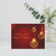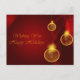Eine moderne Urlaubspostkarte mit glitzernden goldenen Baubeln/Ornamenten auf luxuriösem und elegantem roten Hintergrund. Die Karte lautet: "Möchten Sie glückliche Ferien Personalisieren Sie die Rückseite dieser Postkarte mit Ihrem eigenen Gefühl für Freunde und Familie, indem Sie auf die Schaltfläche Anpassen.