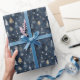 Gold und weiße Bäume, Sterne auf dunkelblauem Hint Geschenkpapier