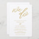 Belle écriture d'or "we do" invitations de mariage avec un design typographique moderne. Customisez ces invitations de mariage avec vos noms, date du mariage, heure et lieu. Choisissez votre choix de papier et terminez l'invitation en choisissant un détail de papier tel que les arêtes incurvées affichées dans l'exemple. Visitez notre magasin pour voir la coordination des cartes rsvp + d'autres produits papier mariages dans cette conception.