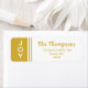Ajoutez le détail final à vos mailings de vacances avec cette étiquette d'adresse de retour simple et moderne de la collection JOY holiday. Une bande d'or sur le côté gauche du étiquette a le mot JOY dans une simple police blanche. Le reste du étiquette est blanc avec votre nom et adresse de retour dans une typographie or.