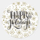 Gold & White Retro Schneeflocken GÜNSTIGE FERIEN G Runder Aufkleber
