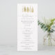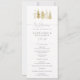 Quelques croquis d'arbres d'hiver surmontés d'étoiles (Noël, ou simplement vacances), en numériquement dorés, décorent ce programme de cérémonie mariage élégant, noir et blanc et or, simple, classe et moderne, parfait pour un mariage d'hiver, autour ou à Noël ou à tout moment pendant les vacances. Il dispose de calligraphie script moderne et élégante avec des amplis florissants. Luxueux mais simple, classique mais chic, moderne mais intemporel. Un très beau choix pour un couple qui se marie dans les mois froids de novembre, décembre et janvier et qui aime l'esthétique de l'art noir et blanc pour la papeterie mariage, noir et blanc et feuille, l'élégance botanique et les arbres d'hiver.
