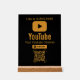 Elevate your YouTube channel's presence with this sleek and modern acrylic sign. Featuring a striking gold and black design, this sign prominently displays "Like & SUBSCRIBE" with the iconic YouTube logo and a "SUBSCRIBE" button graphic. Below, a QR code allows for seamless scanning, directing viewers directly to your channel. This elegant piece is perfect for displaying at events, on your desk, or in your studio to encourage audience engagement and growth. Make a professional statement and let your viewers easily connect with your content.