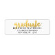 Elegantes modernes Design - Fett Handwriting - Graduate - Schwarz und Gold auf Weiß - Abschluss Rücksendeadresse Label. Imitate Goldfolie (bedruckter Foto-Effekt auf einer matten Oberfläche) auf einem weißen soliden Hintergrund Graduation Party Einladung Rücksendeadressen-Aufkleber. Elke Clarke© für Monogram Gallery. Für andere Farben und Stile verfügbar.