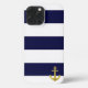 Einzigartiges und elegantes Design mit blauen nautischen Streifen und einem schimmernden goldenen Anker.