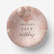 Für eine elegante 21. Geburtstagsparty (oder jedes Alter). Eine Rose Gold Imitate metallisch aussehend Hintergrund. Dekoriert mit Rose Gold, rosa Imitat Glitzer Tropfen, Farbe Tropfen Aussehen, Glitzer Tropfen und Ballons. Personalisieren und fügen Sie den Namen und Alter 21.