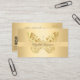 Ein elegantes Imitat mit goldenem Hintergrund, das mit einem Schmetterling dekoriert ist. Personalisieren Sie Ihren Namen auf der Vorderseite und fügen Sie ihn hinzu. Zurück: Vorlagen für Ihren Namen, Titel, Telefonnummer, E-Mail und Website-Adresse, QR-Code. Ideal für Unternehmerinnen, Berater, Geschäftsinhaber.