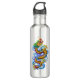 Diese Stahlwasserflasche hat einen bunten und ausführlichen Drachen in den Schatten des Goldes, des Grüns, des Roten und Blau und wird vorbei spritzt vom blauen Wasser umgeben.
