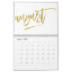Es ist Kalender 20xx Vorlage mit Gold-Folie Effekt (Imitate, sehen wie) Skript Monate geschrieben. Es misst 11 Zoll x 8,5 Zoll (mittelgroß) mit silberner Drahtbindung (andere Drahtbinderfarben sind weiß, schwarz, blau, rot, grün oder gold). Zahlen werden als klassisches Gitter gedruckt, Feiertage werden nicht gedruckt, aber Sie können sie auch hinzufügen. Es ist zwölf Monate Kalender und beginnt im Januar und endet im Dezember. Sie können auch einen kleineren (7 Zoll x 5,5 Zoll) oder größeren (14,25 Zoll x 11 Zoll) Kalender bekommen.