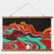 Golden, Aquamarin, Rot und Schwarz Fluid Art Wandteppich Mit Holzrahmen